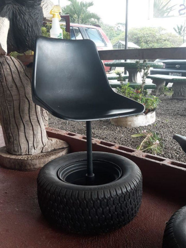 Diese Hocker habe ich mal auf einem Urlaub auf einer Gartenterrasse entdeckt. Hier wurde die Felge gleich mitbenutzt. Statt der Achse steckt jetzt ein Rohr mit einer Sitzschale von einem Drehstuhl in der Felge.https://transitionsblog.de/content/die-besten-upcycling-ideen-mit-autoreifen-fuer-den-garten/