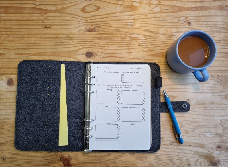 Mit dieser Druckvorlage für einen Wochenkalender 2026 kannst du dir deinen eigenen Kalender als Ringbuch zusammenstellen. Das Ringbuch kannst du mehrere Jahre verwenden und mit der passenden PDF-Vorlage druckst du die für dich passenden Seiten aus.